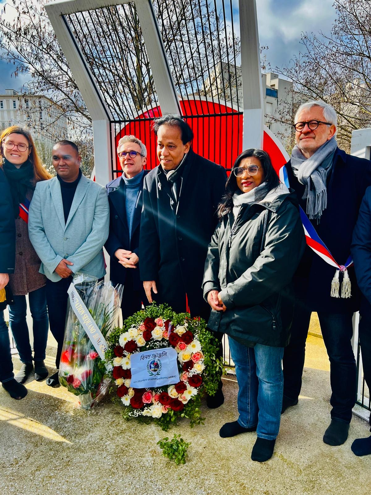 গভীর ভাবগম্ভীর পরিবেশে মহান ভাষা শহিদদের স্মরণে এক মিনিট নীরবতা পালনের মধ্য দিয়ে প্যারিস প্রবাসী বাংলাদেশিরা যথাযোগ্য মর্যাদায় উদ্যাপন করেছেন আন্তর্জাতিক মাতৃভাষা দিবস। ২০২৩ সালে সেন্ট-দেনিসে প্রতিষ্ঠিত স্থায়ী শহিদ মিনার প্রাঙ্গণে আয়োজিত এ অনুষ্ঠানে ফরাসি সরকারি প্রতিনিধি, স্থানীয় জনপ্রতিনিধি এবং বাংলাদেশি কমিউনিটির বিশিষ্ট ব্যক্তিবর্গ উপস্থিত ছিলেন।